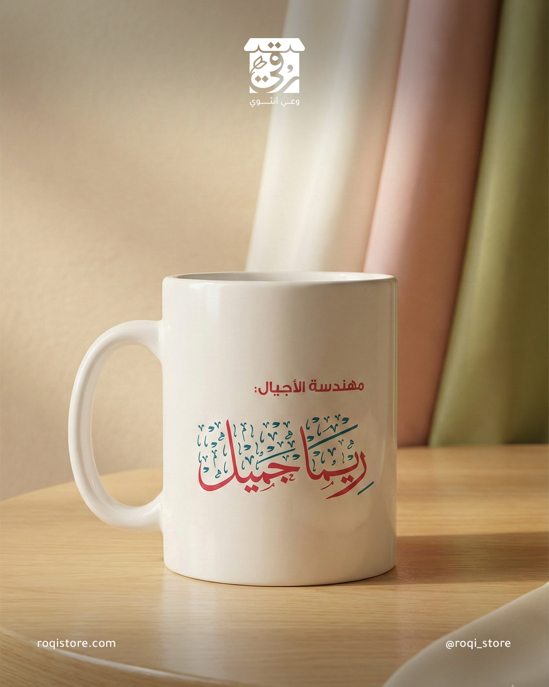 “ليس مجرد كوب، بل تذكرة فخرٍ يومية ✨. يزين ركن قهومع اسمكتكِ بعبارة ‘إن الأم تصنع أمة’، ليُهمس في قلبكِ مع كل رشفة دافئة 💭🤍: أن ما تغرسينه بحبٍ داخل جدران بيتك 🌿، هو الذي يبني العالم في الخارج 🌍. قطعة فنية أنيقة.. تليق بامرأةٍ تعي عظمة أثرها 🌸.”