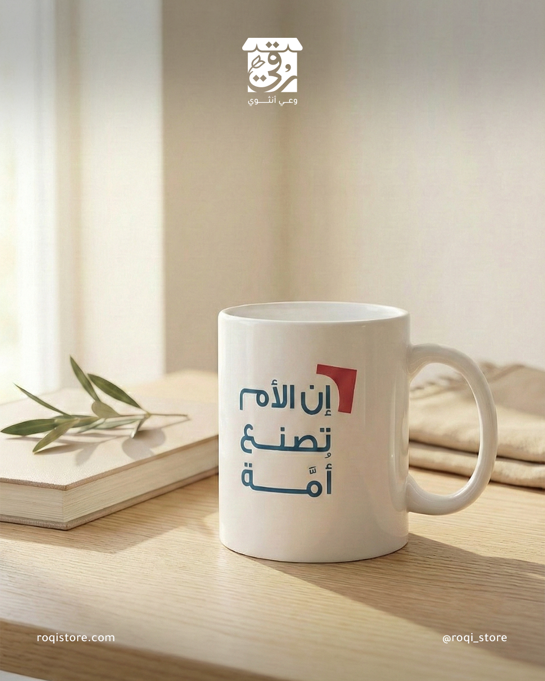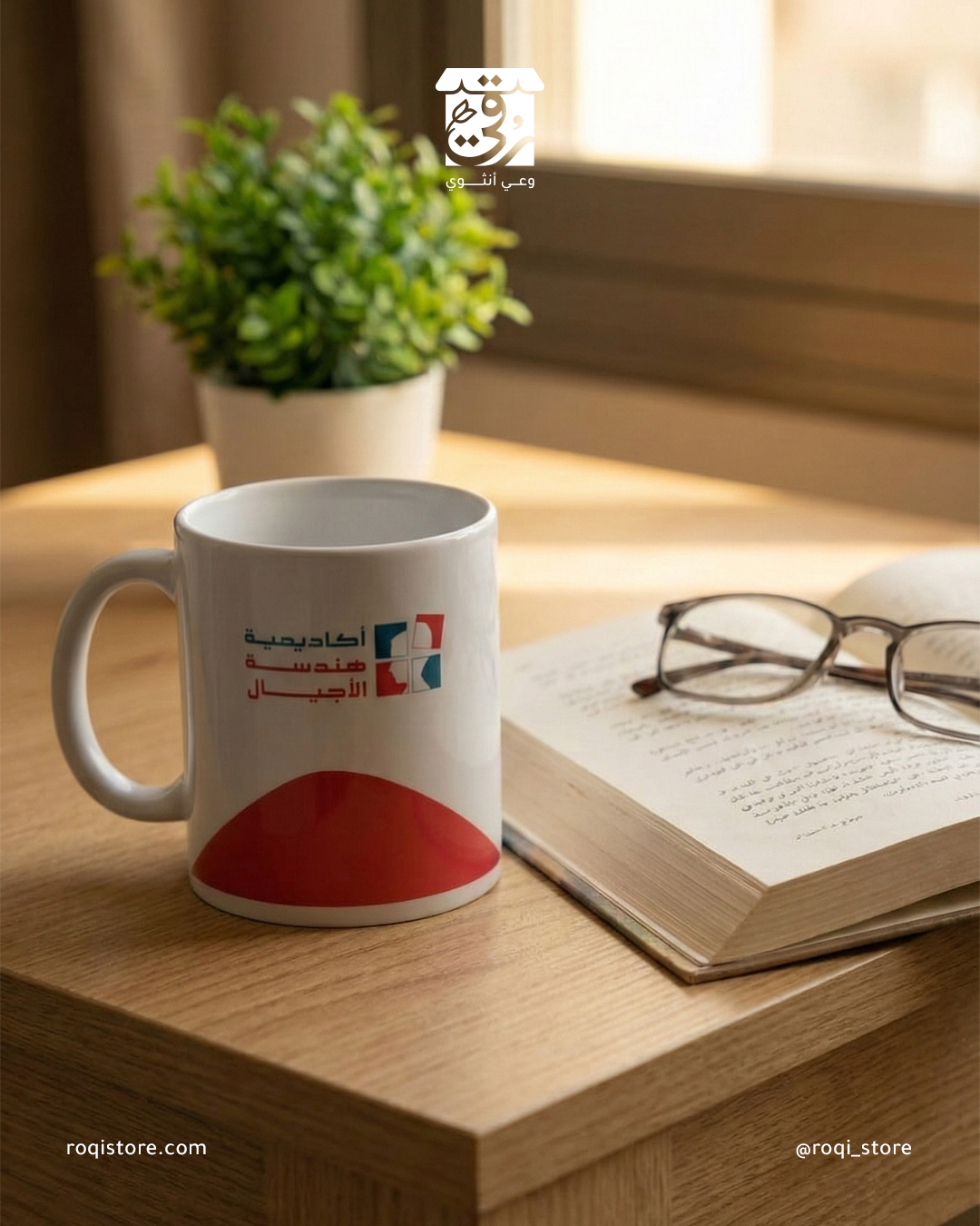 كوب “الانتماء” ☕🌿 “بدايةٌ دافئة ليومٍ يملؤه العطاء. يرافقكِ شعار ‘أكاديمية هندسة الأجيال’ مع قهوة الصباح، ليكون تذكيراً يومياً بانتمائكِ لرسالةٍ نبيلة 🌤️: رسالة بناء العقول وتنشئة القادة بحب ووعي 🤍. بياضٌ ناصع وتصميم مريح.. يليق بصباحات امرأةٍ تحمل همّ أمتها.”